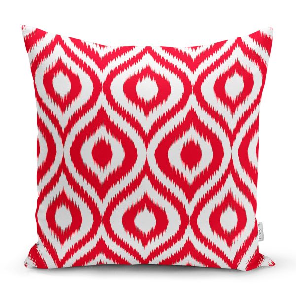 Özel Tasarım Kırmızı İkat Desenli Dijital Baskılı Yastık Kırlent Kılıfı