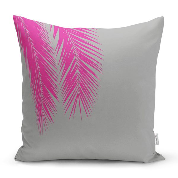 Gri Zeminde Fuşya Palmiye Yaprakları Motifli Yastık Kılıfı