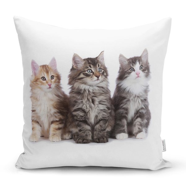 Sevimli Kediler Desenli Dijital Baskılı Modern Yastık Kırlent Kılıfı