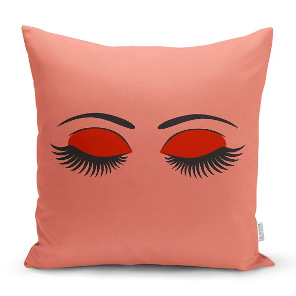 Yavru Ağzı Rengi Zeminde Kirpik Motifli Dekoratif Kırlent Kılıfı