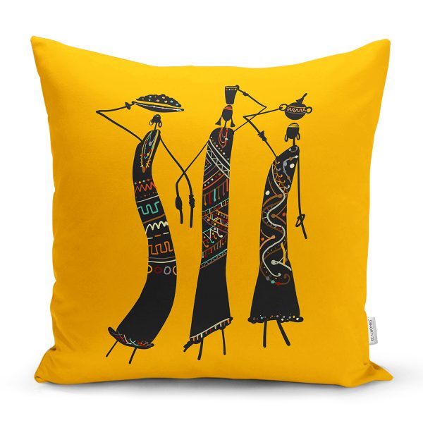 Turuncu Zeminde Afrika Kadınlar Tasarımlı Dijital Baskılı Kırlent Kılıfı