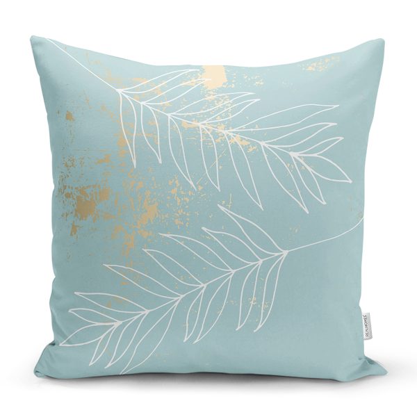 Mavi Simli Zemin Yapraklı Tasarım Desenli Dijital Baskılı Dekoratif Yastık Kırlent Kılıfı