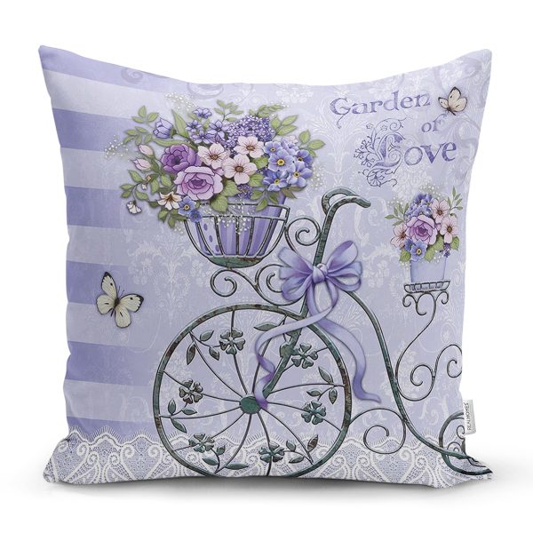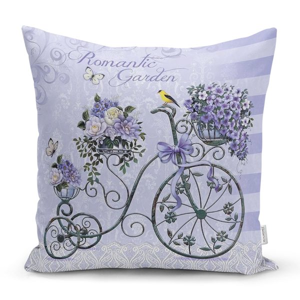 Bisiklet Ve Çiçek Figürlü Özel Tasarım Dijital Baskılı Modern Yastık Kırlent Kılıfı