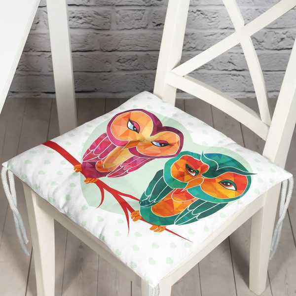 Baykuş Desenli Dijital Baskılı Modern Modern Pofuduk Sandalye Minderi