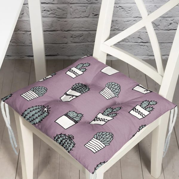 Açık Mor Zeminli Kaktüs Tasarımlı Dijital Baskılı Modern Pofuduk Sandalye Minderi