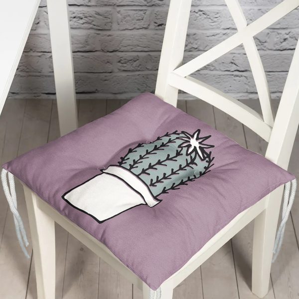 Açık Mor Zemin Sade Kaktüs Tasarımlı Dijital Baskılı Modern Pofuduk Sandalye Minderi