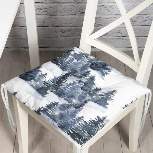 Suluboya Çizimli Kış Temalı Çam Ağaçları Dijital Baskılı Modern Pofuduk Sandalye Minderi