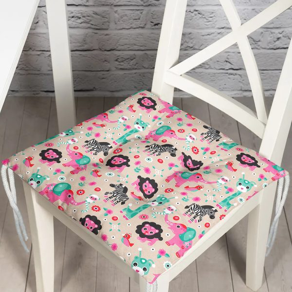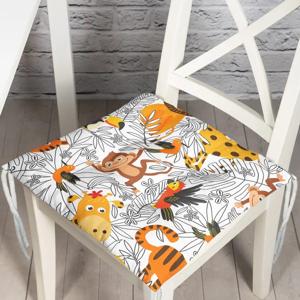 Rengarenk Orman Hayvanları Motifli Dijital Baskılı Özel Tasarım Modern Pofuduk Sandalye Minderi
