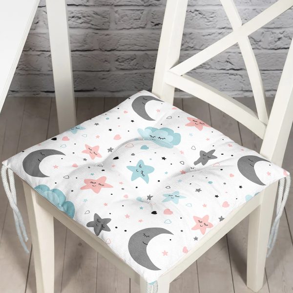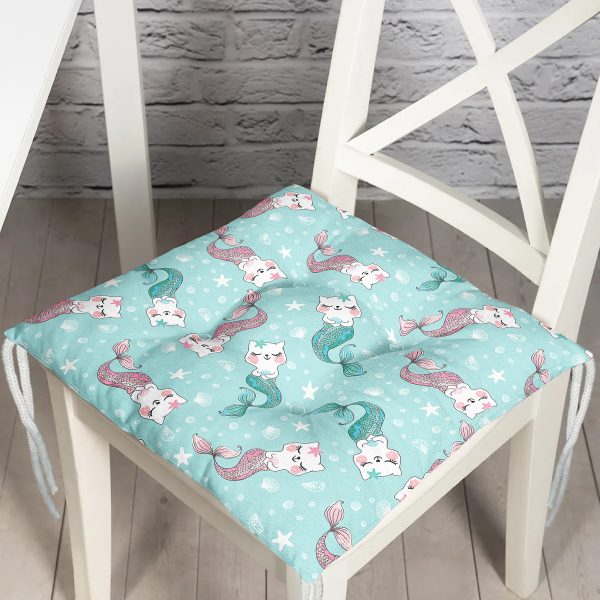 Realhomes Deniz Kızı Ayaklı Kedicik Tasarımlı Dijital Baskılı Modern Pofuduk Sandalye Minderi
