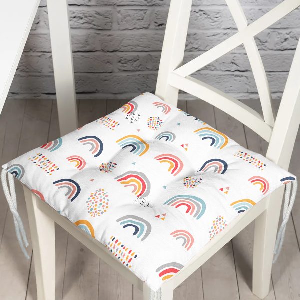Gökkuşağı Tasarımlı Dijital Baskılı Özel Tasarım Modern Pofuduk Sandalye Minderi