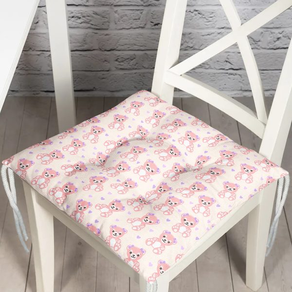 Sevimli Ayıcık Desenli Dijital Baskılı Özel Tasarım Modern Pofuduk Sandalye Minderi