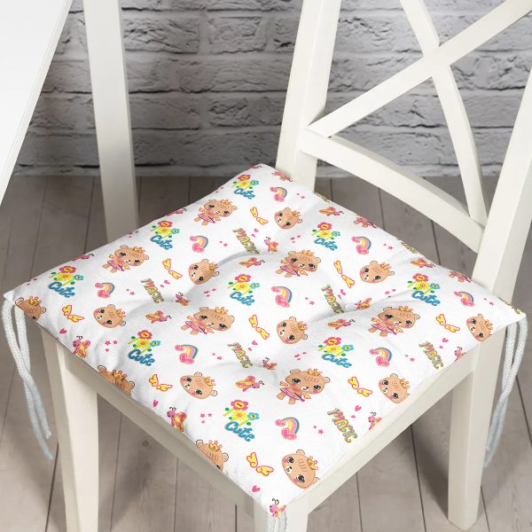 Sevimli Minik Ayıcık Motifli Dijital Baskılı Özel Tasarım Modern Pofuduk Sandalye Minderi