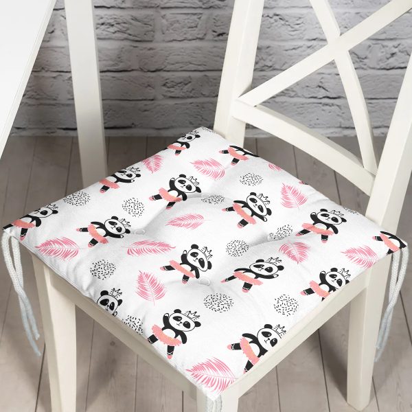 Pembe Balerin Panda Desenli Dijital Baskılı Özel Tasarım Modern Pofuduk Sandalye Minderi