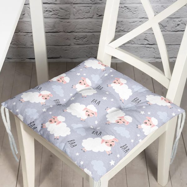 Puanlı Gri Zeminde Koyun Desenli Dijital Baskılı Özel Tasarım Modern Pofuduk Sandalye Minderi