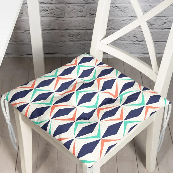 Renkli Geometrik Desenli Dijital Baskılı Modern Pofuduk Sandalye Minderi