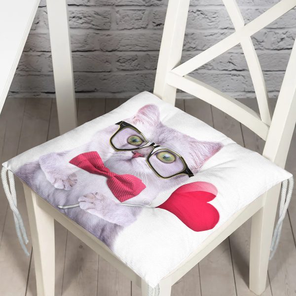 Kedili Dijital Baskılı Modern Pofuduk Sandalye Minderi