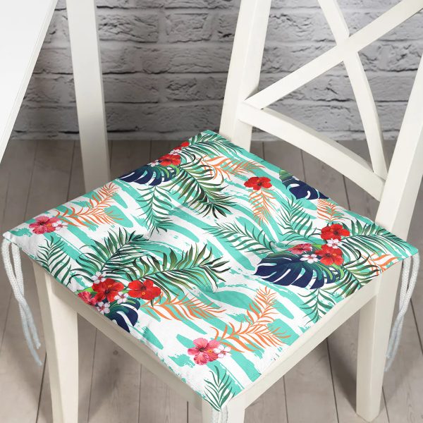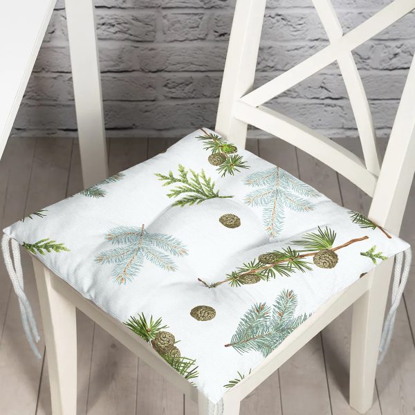Çam Dalı Motifli Dijital Baskılı Pofuduk Sandalye Minderi