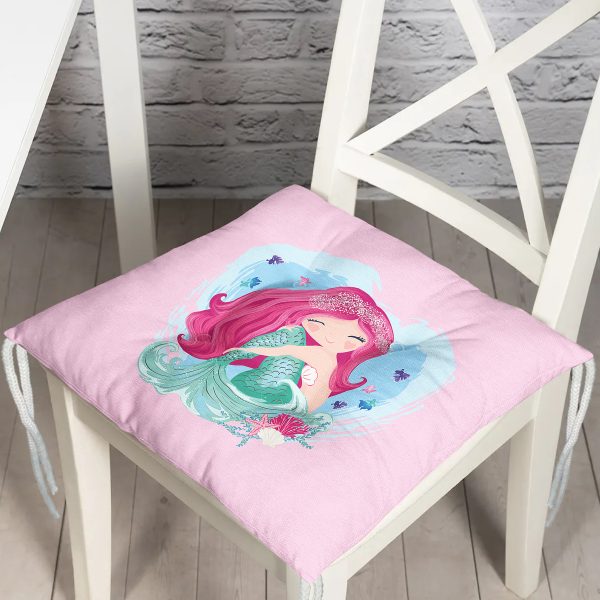 Realhomes Pembe Zeminde Denizkızı Tasarımlı Dijital Baskılı Modern Pofuduk Sandalye Minderi