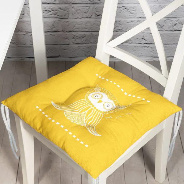 Realhomes Sarı Zeminde Baykuş Özel Tasarımlı Modern Pofuduk Sandalye Minderi