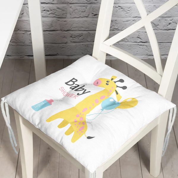 Beyaz Zeminde Balon ve Zürafa Desenli Özel Tasarım Bebek Odası Pofuduk Sandalye Minderi