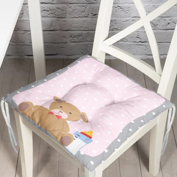 Ayıcık Ve Biberon Desenli Özel Tasarımlı Dijital Baskılı Çocuk Odası Pofuduk Sandalye Minderi