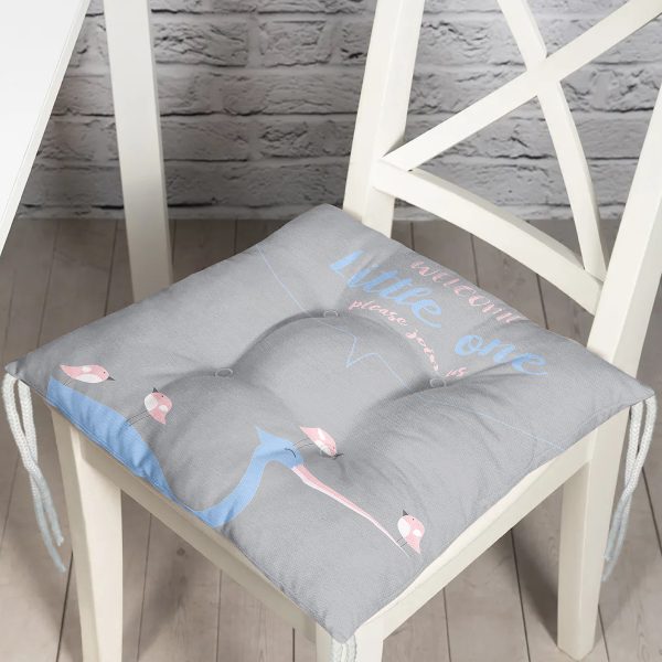 Gri Zemin Pelikan Ve Kuş Desenli Özel Tasarımlı Dijital Baskılı Çocuk Odası Pofuduk Sandalye Minderi