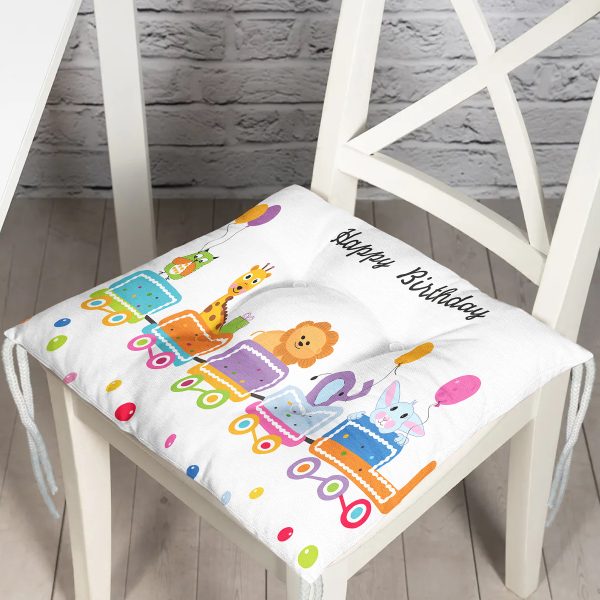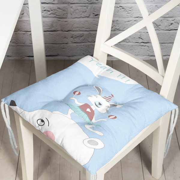 Realhomes Sevimli Hayvanlar Çizimli Özel Tasarım Dijital Baskılı Modern Pofuduk Sandalye Minderi
