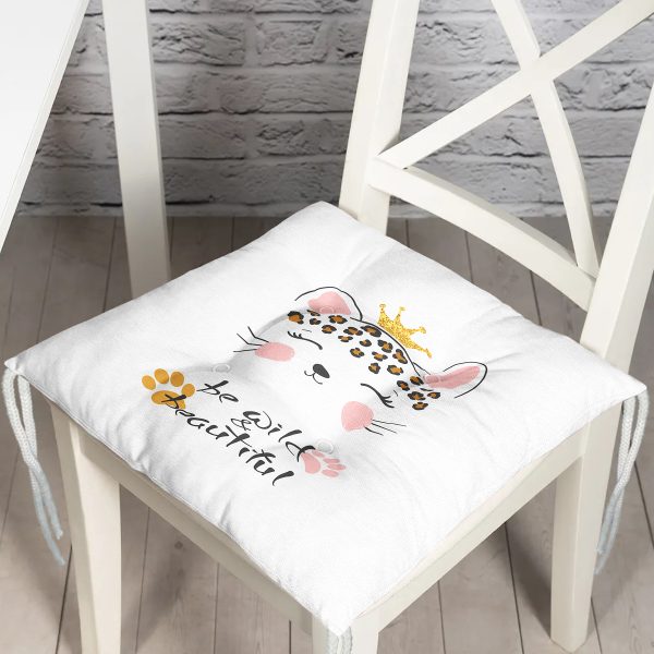 Realhomes Beyaz Zeminde Be Wild & Beautiful Temalı Modern Pofuduk Sandalye Minderi