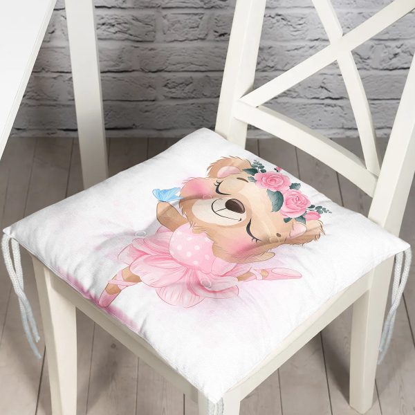 Sevimli Bebek Balerin Çocuk Odası Dijital Baskılı Modern Pofuduk Sandalye Minderi