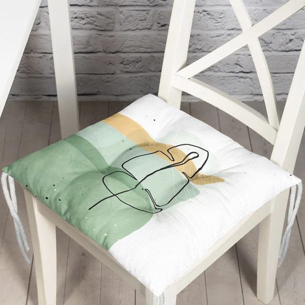 Renkli Zemin Üzerinde Onedraw Çizimli Yaprak Motifli Dijital Baskılı Modern Pofuduk Sandalye Minderi