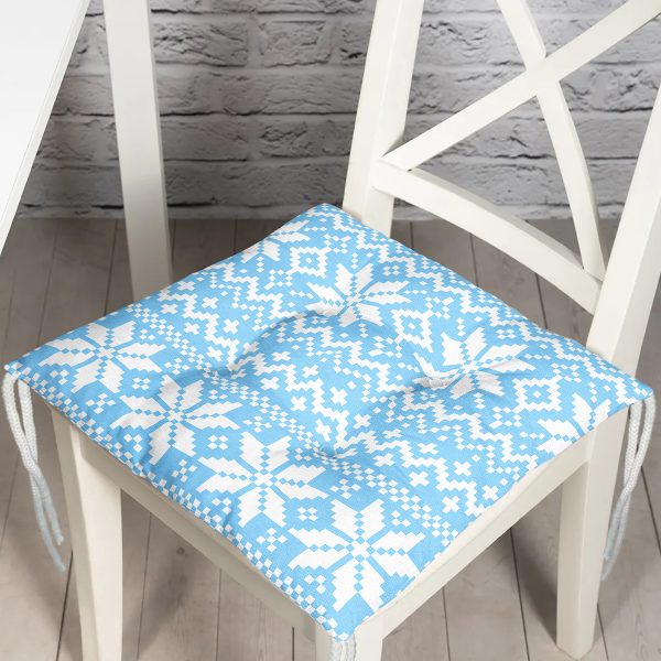Mavi Zemin Üzerinde Kar tanesi Motifli Dijital Baskılı Modern Pofuduk Sandalye Minderi