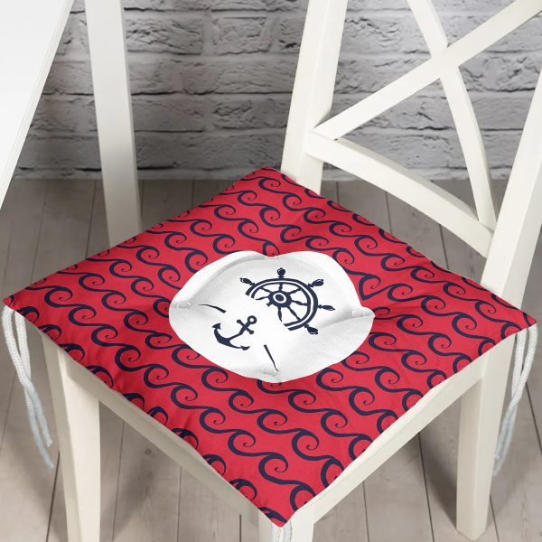 Renkli Zemin Üzerinde Çapa Desenli Dijital Baskılı Modern Pofuduk Sandalye Minderi