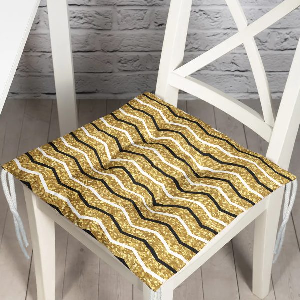 Gold Zemin Üzerinde Modern Renkli Zikzak Desenli Dijital Baskılı Modern Pofuduk Sandalye Minderi