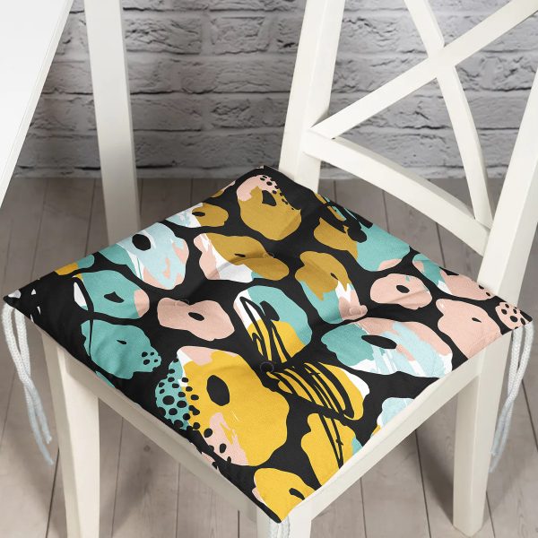 Siyah Zemin Üzerinde Renkli Geometrik Desenli Dijital Baskılı Modern Pofuduk Sandalye Minderi
