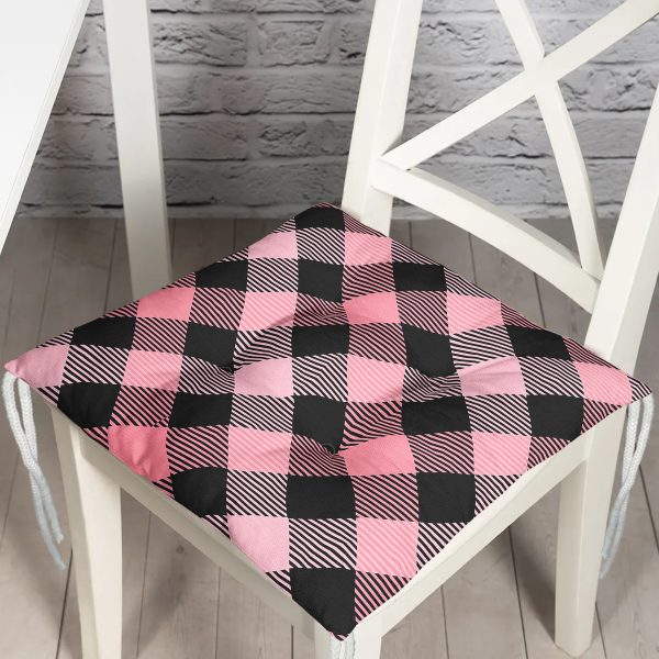 Renkli Pastel Zemin Üzerinde Siyah Ekose Desenli Dijital Baskılı Modern Pofuduk Sandalye Minderi