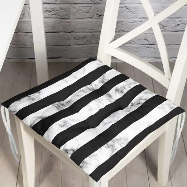 Mermer ve Siyah Çizgili Dijital Baskılı Modern Pofuduk Sandalye Minderi