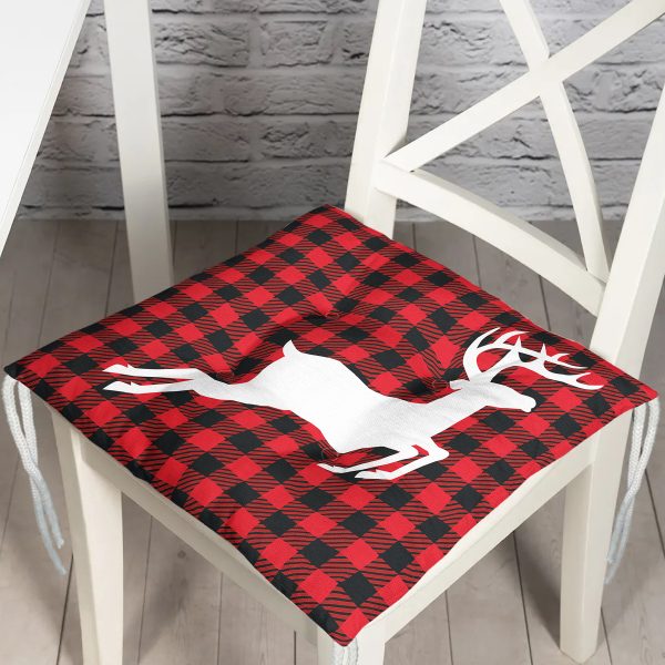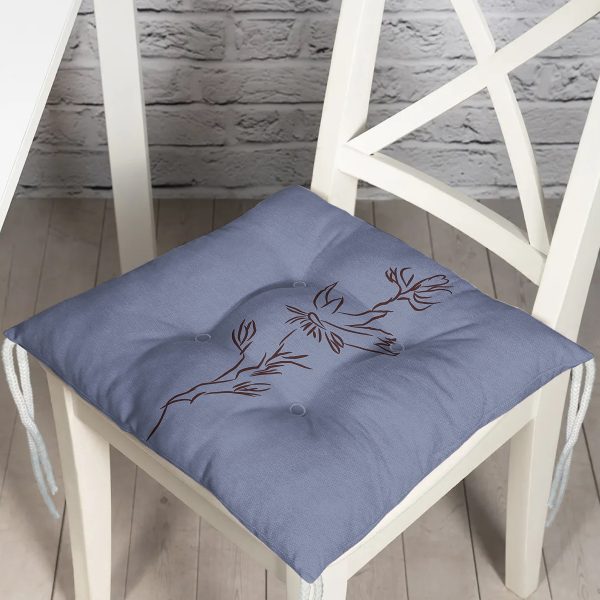 Ekose Zemin Geyik Tasarımlı Dijital Baskılı Modern Pofuduk Sandalye Minderi