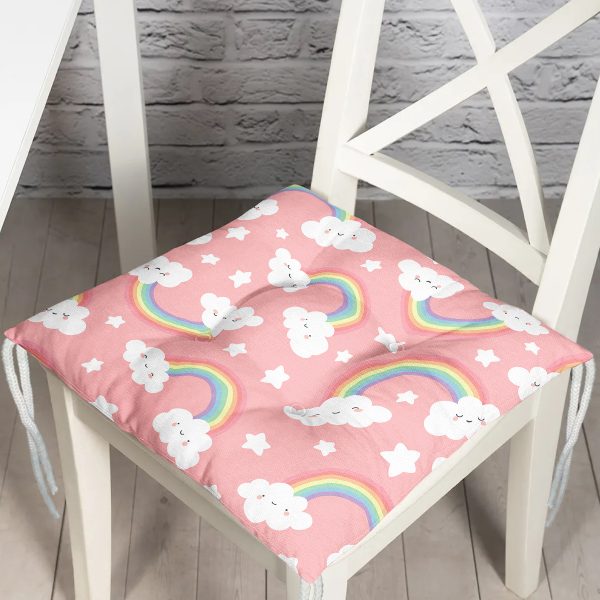 Realhomes Pembe Zeminde Gökkuşağı Tasarımlı Dijital Baskılı Modern Pofuduk Sandalye Minderi