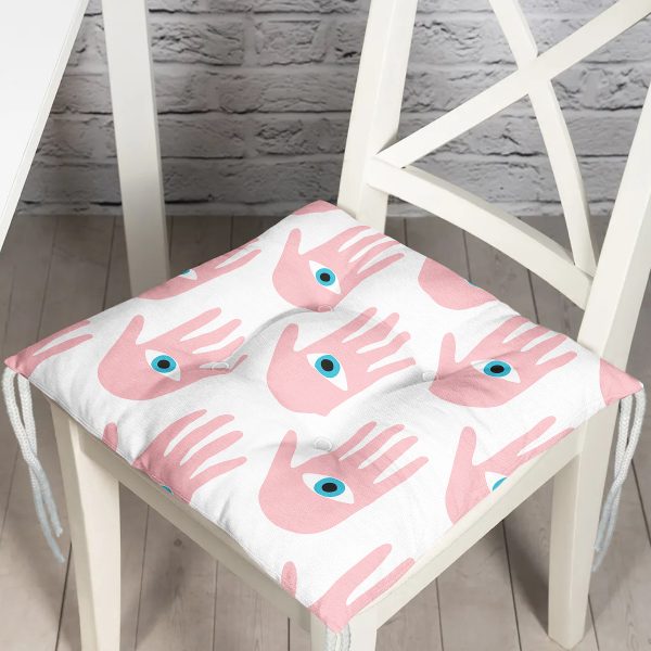 Mistik El İçinde Göz Motifli Dijital Baskılı Modern PPofudukSandalye Minderi