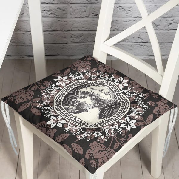 Gül & Portre Motifli Dijital Baskılı Modern Pofuduk Sandalye Minderi