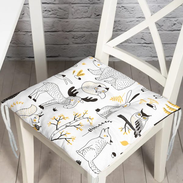 Realhomes Sevimli Hayvanlar Çizimli Özel Tasarım Dijital Baskılı Modern Pofuduk Sandalye Minderi
