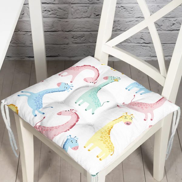 Renkli Zürafa Motifli Dijital Baskılı Özel Tasarım Modern Pofuduk Sandalye Minderi