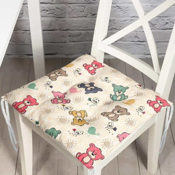 Sevimli Rengarenk Ayıcık Motifli Dijital Baskılı Özel Tasarım Modern Pofuduk Sandalye Minderi