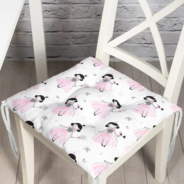 Peri Prenses Motifli Dijital Baskılı Özel Tasarım Modern Pofuduk Sandalye Minderi