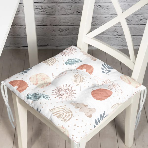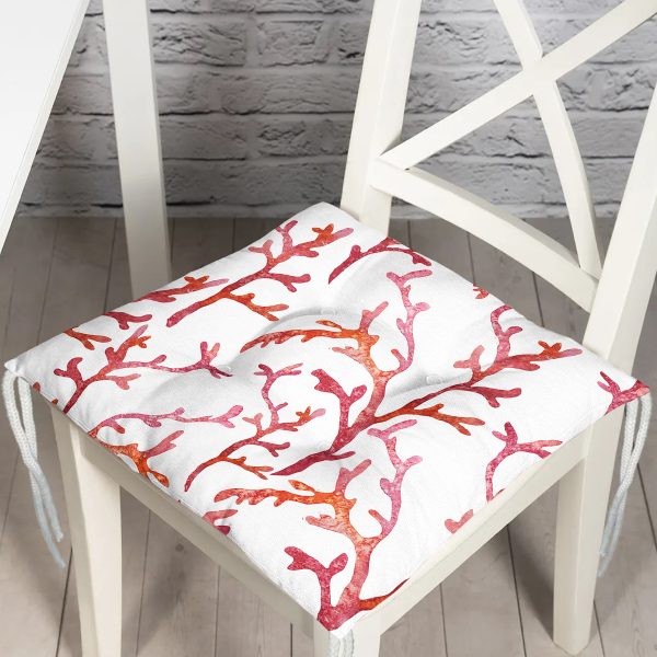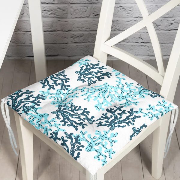 Beyaz Zemin Üzerinde Renkli Deniz Otu Desenli Dijital Baskılı Modern Pofuduk Sandalye Minderi