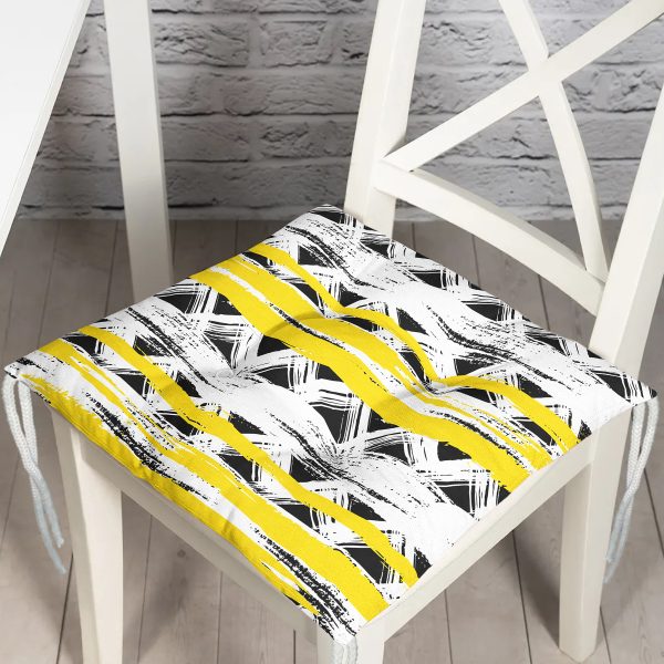 Sarı Siyah Üçgen ve Çizgiler Desenli Modern Pofuduk Sandalye Minderi