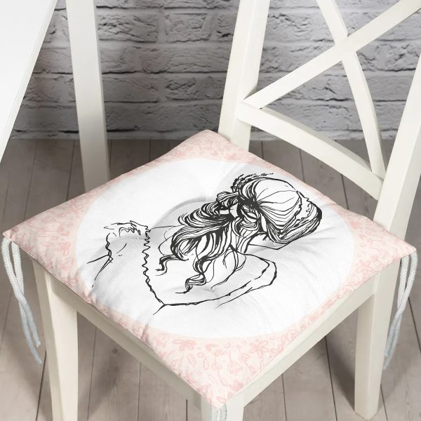 Fashion Girl Figürlü Dijital Baskılı Modern Pofuduk Sandalye Minderi