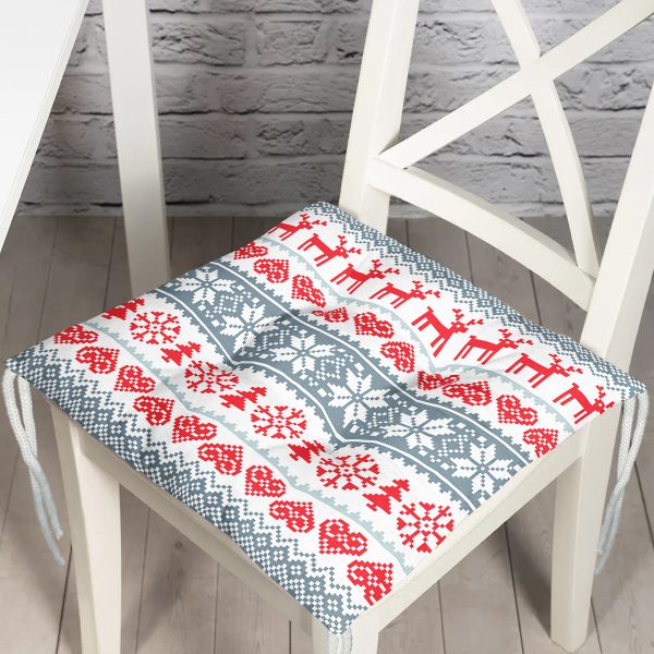 Yılbaşı Konsept Desenli Özel Tasarımlı Dijital Baskılı Modern Pofuduk Sandalye Minderi