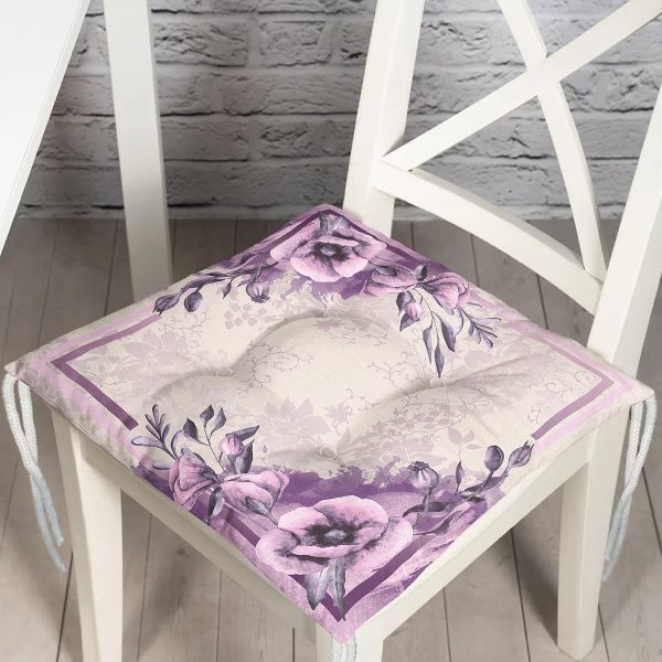 Çiçek Desenli Özel Tasarım Dijital Baskılı Modern Pofuduk Sandalye Minderi