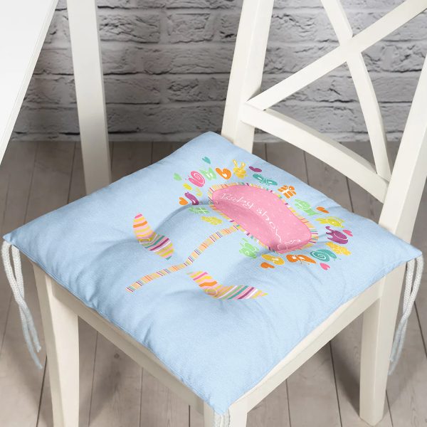 Realhomes Mavi Zeminde Baby Shower Tasarımlı Modern Pofuduk Sandalye Minderi
